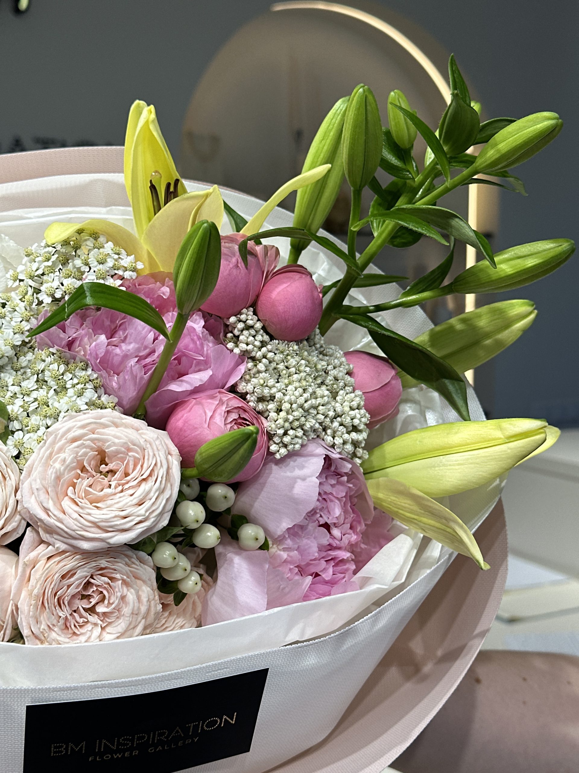 Culoarea și textura ambalajului oferă o notă suplimentară de stil și rafinament, semnate BM INSPIRATION Flower Gallery.